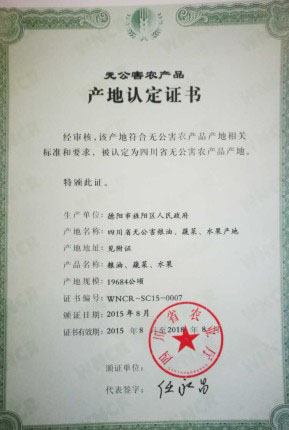 產(chǎn)地認(rèn)證證書(shū)